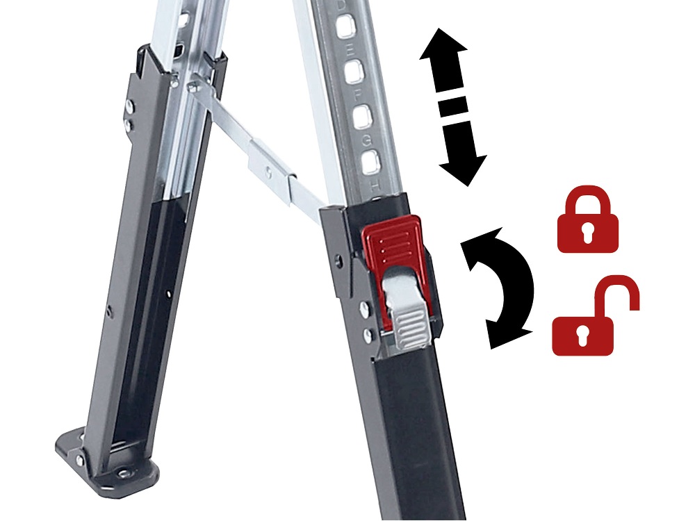 Při rozložení lze kozu výškově nastavit od 61,5cm do 82cm a to po jednotlivých po přednastavených krocích (1 krok je cca 2,85cm).
