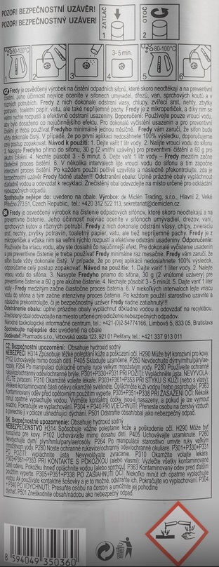 FREDY čistič sifonů 500 g 9 dávek, extra účinné mikrogranule, které se rychle rozpustí a efektivně odstraní usazeniny.