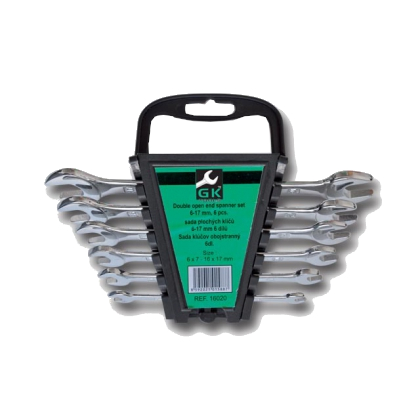 Sada plochých maticových klíčů s plastovém držáku.