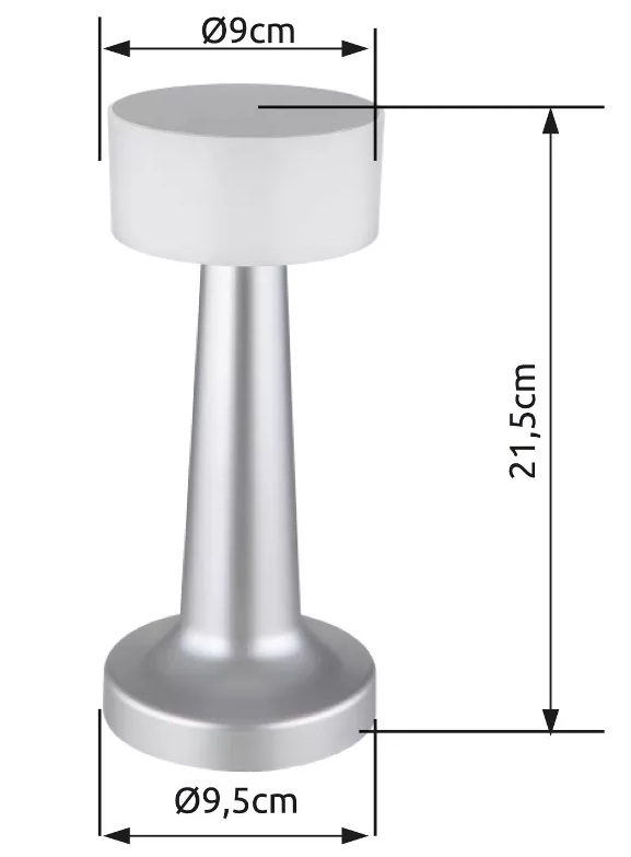 Svítidlo je stmívatelné a má plynulý dotykový stmívač, kterým lze individuálně nastavit jas. Barvy lze zafixovat a světlo lze dobíjet pomocí dodaného kabelu USB.