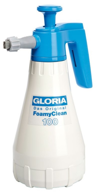 Tlakový postřikovač pro aplikaci čistící pěny.