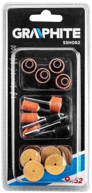 Příslušenství k minibrusce, sada obsahuje 52 kusů brusných nástrojů.