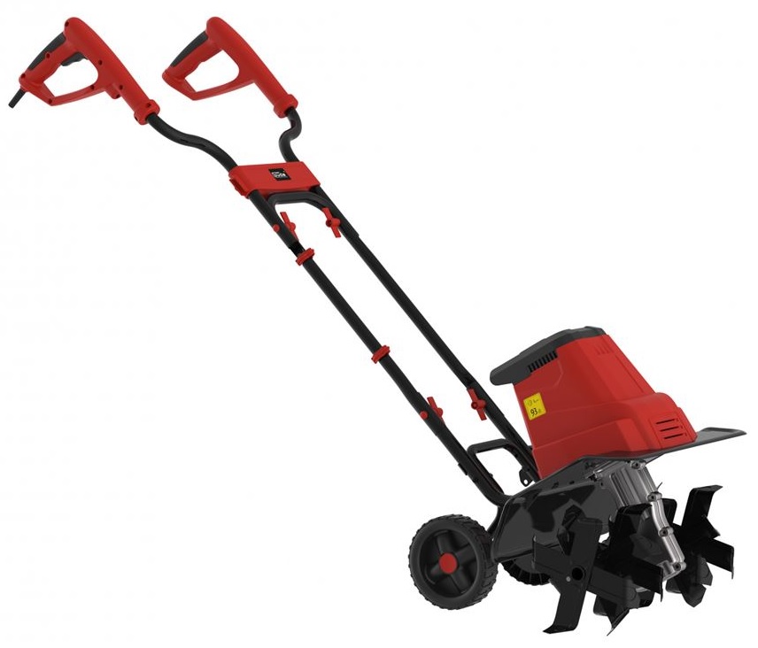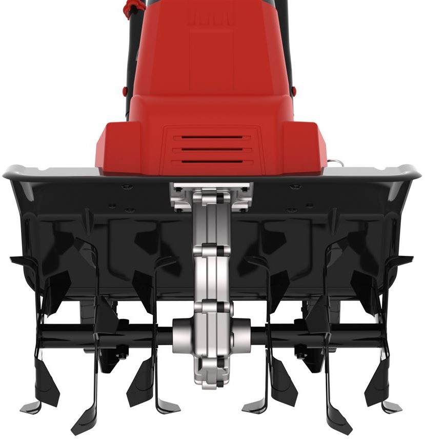 Konstrukce: robustní kryt kultivačních nožů, závěs pro odlehčení tahu na kabel, pomocná (přepravní) kolečka.
