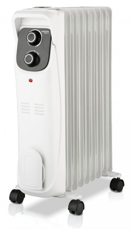 Elektrický olejový radiátor Haeger HAE-OH011007A Elan s výkonem 2 500 W, s nastavitelným termostatem nabízí výběr ze 3 stupňů ohřevu.