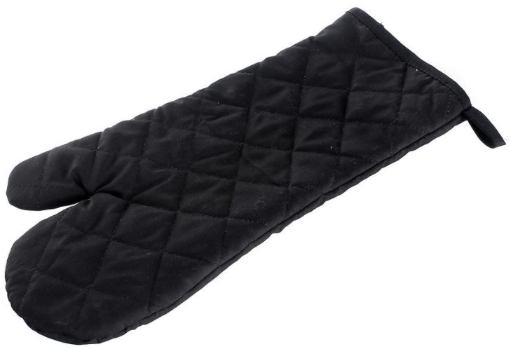 Rukavice, která ochrání Vaše ruce před žárem, použitelná na obě ruce, délka 40 cm, šířka 15 cm, barva černá.