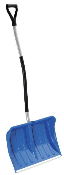 Lopata na sníh má ergonomicky tvarovanou násadu a odolnou rukojeť ve tvaru písmene T.