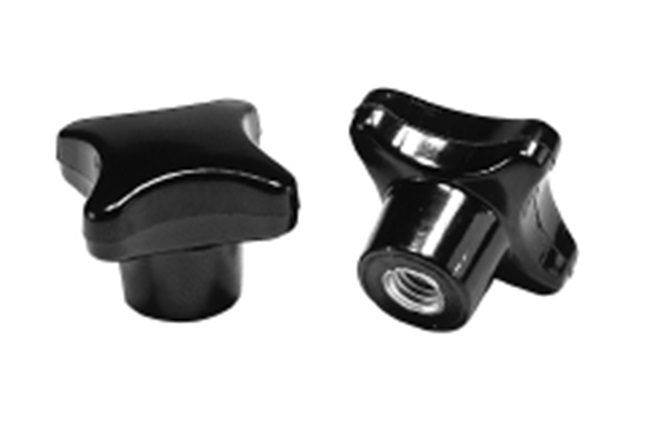 Ovládací element - matka - hvězdice - hladce leštěná. Barva: černá. Materiál: Duroplast, mosazný nebo pozinkovaný závit.