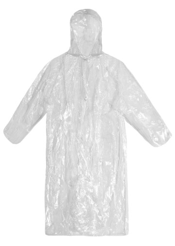Jednorázová pláštěnka, voděodolná, lehká, dobře skladná, velikost univerzální, materiál 100% polyethylen