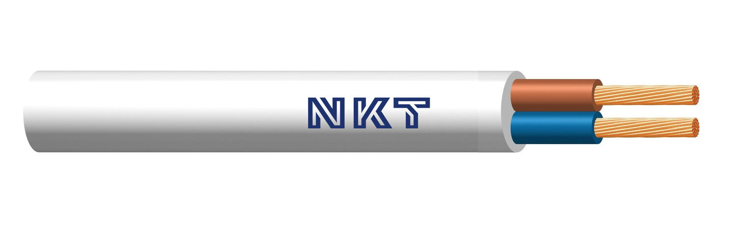 Flexibilní kabel kulatý H05VV-F 2X1 v bílé barvě 300/500 V.