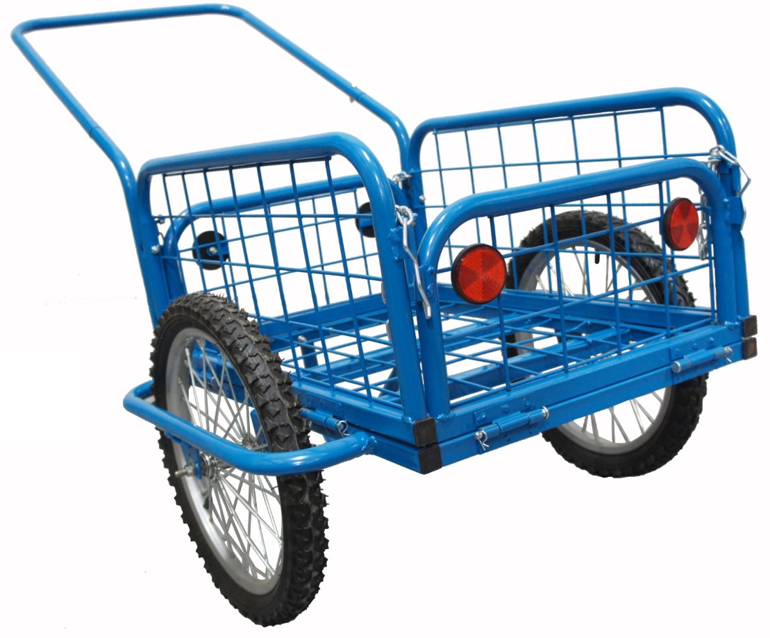 Praktický univerzální ruční vozík, kárka s výklopnou přední a zadní bočnicí.