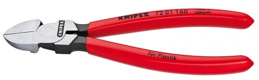 Boční štípací kleště na umělou hmotu, leštěná hlava, rukojeti potažené umělou hmotou.