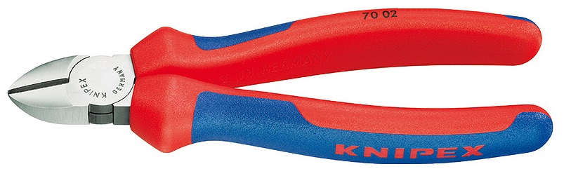 Boční štípací kleště, leštěná hlava, rukojeti s vícesložkovými povlaky, břit s fazetou.
