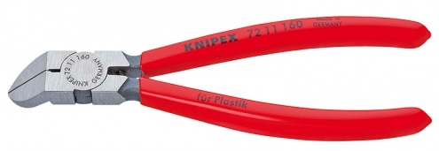 Boční štípací kleště na umělou hmotu, leštěná hlava, rukojeti potažené umělou hmotou.