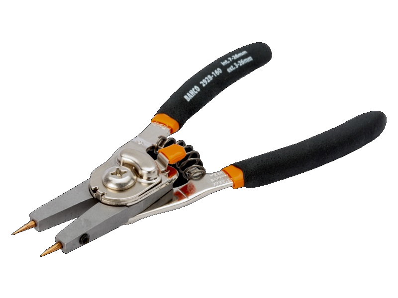 Patentované kleště jsou vybaveny vyměnitelnými hroty (rovné, 15° a 90°) které se mohou lehce přizpůsobit pro použití na vnitřní nebo na vnější pojistné kroužky.