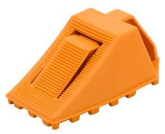 Klín pod kolo vozidla opatřený brzdou, která se při zatížení zapře o podklad a zajistí tak nehybnost vozidla.
