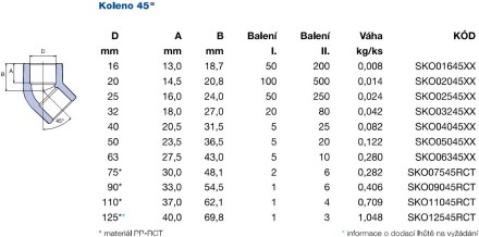 Koleno WAVIN EKOPLASTIK PPR 20mm, 45°, svařovací, voda, PP-R