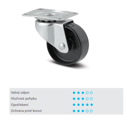 Jednořadá kuličková dráha v otočné hlavě kola.