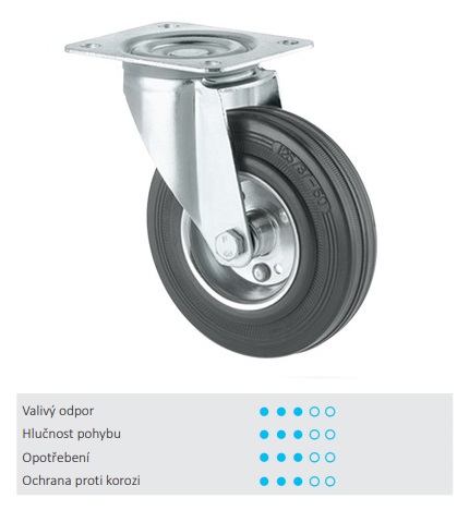 Otočné kolečko s totální brzdou v zadní části kola.