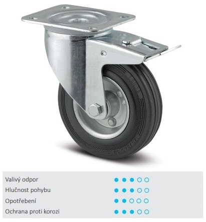 Otočné kolečko s totální brzdou v zadní části kola.