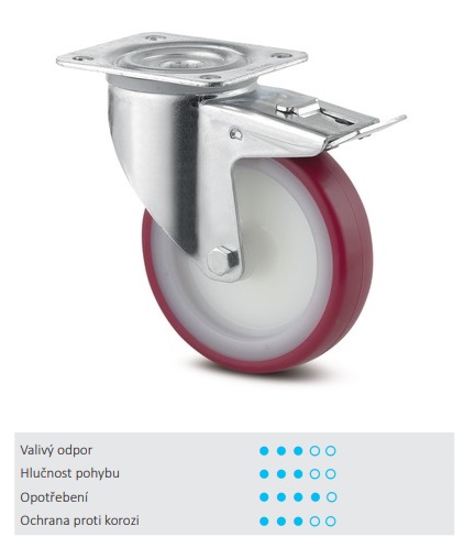 Otočné kolečko s totální brzdou v zadní části kola.