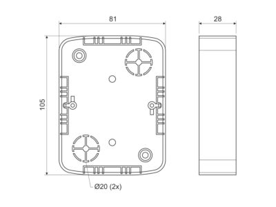 Krabice lištová pod dvojzásuvku TANGO. Určené pro dvouzásuvky modelové řady Tango. Pro instalaci na materiály třídy reakce na oheň E nebo F použijte izolační podložku. Vnitřní hloubka: 24 mm Vnější rozměry: 81 x 105 x 28 mm Součástí dodávky jsou dva upevňovací šrouby.