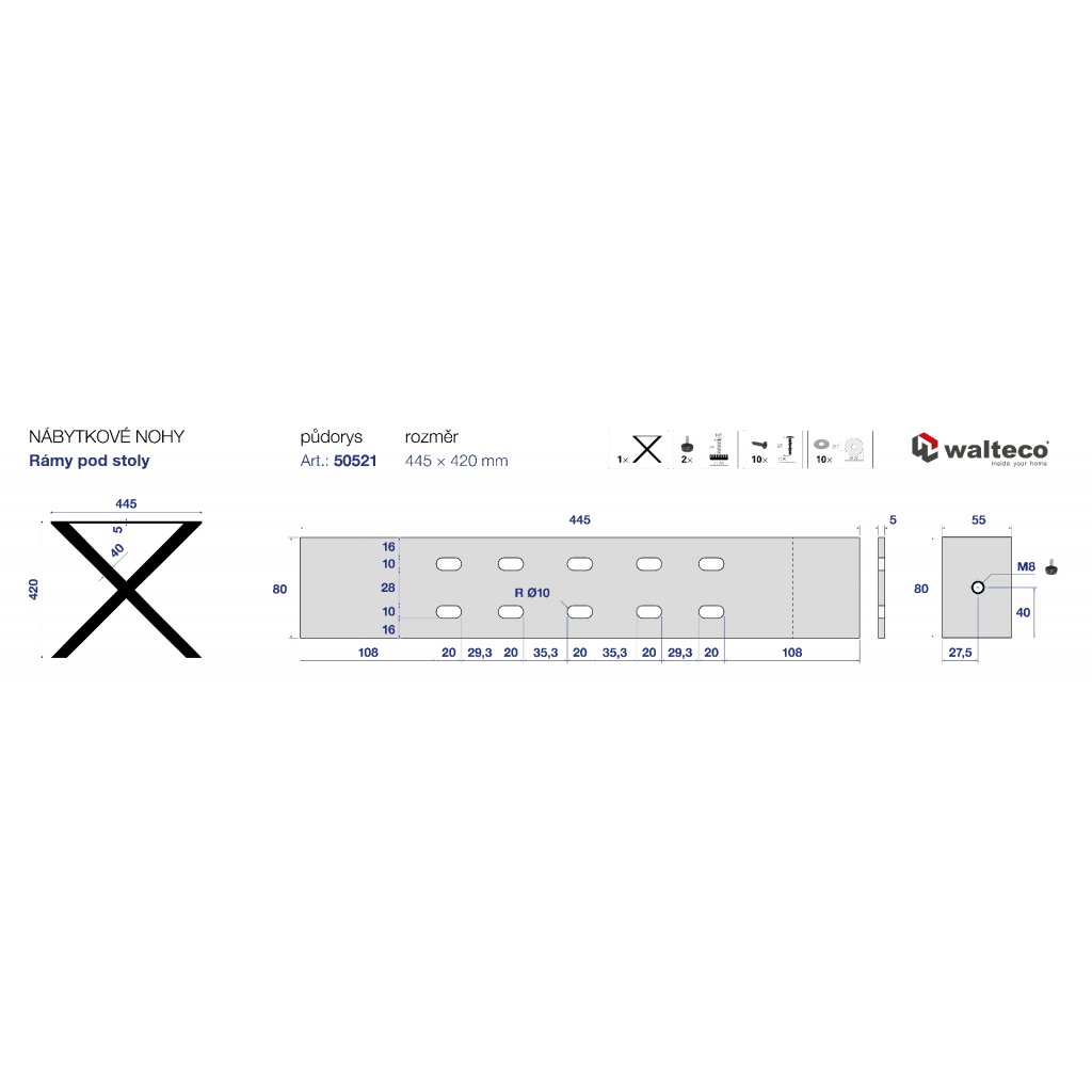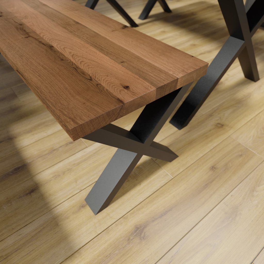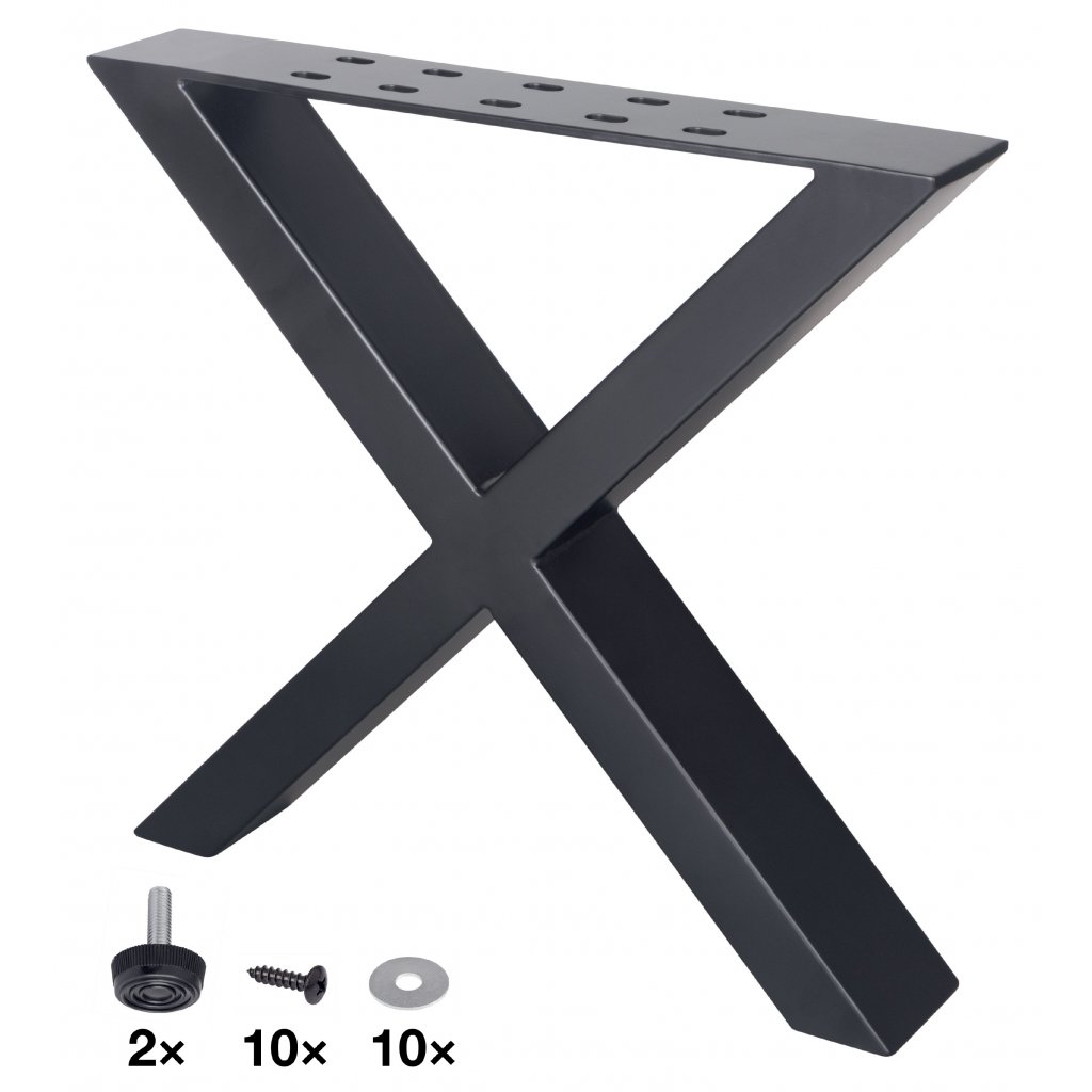 Kovový rám ve tvaru X v matné černé barvě se stylově hodí na výrobu nábytku v industriálním a loftovém stylu. V kombinaci se dřevem jsou vhodné na výrobu různých typů laviček nebo stolků nižších výšek o nosnosti do 80 kg.