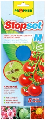 Modré lepové desky slouží k odchytu škodlivého hmyzu jako je třásněnka západní, třásněnka zahradní nebo třásněnka chmelová. Chrání bramboříky, begónie, gerbery, fíkusy, rajčata, okurky, papriky nebo zelí. Jsou bez zápachu, bez insekticidů, nevysychají. Balení obsahuje 5 kusů.