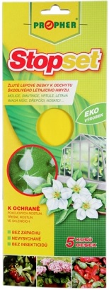 Žluté lepové desky slouží k odchytu molice, smutnice, vrtule, létavých imag mšic, dřepčíka a nosatců. Chrání pokojové rostliny, třešně a rostliny ve sklenících. Jsou bez zápachu, bez insekticidů a nevysychají. V balení je 5 kusů.