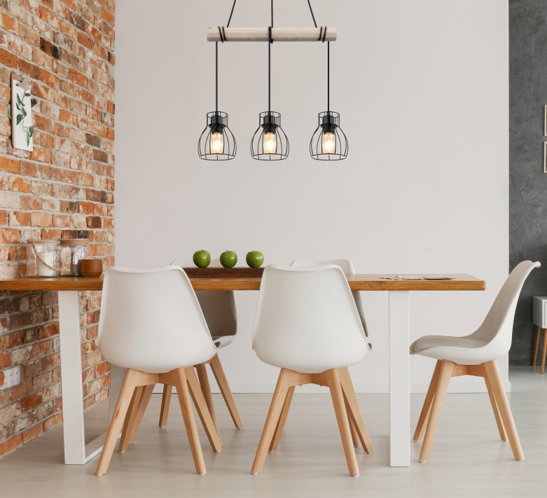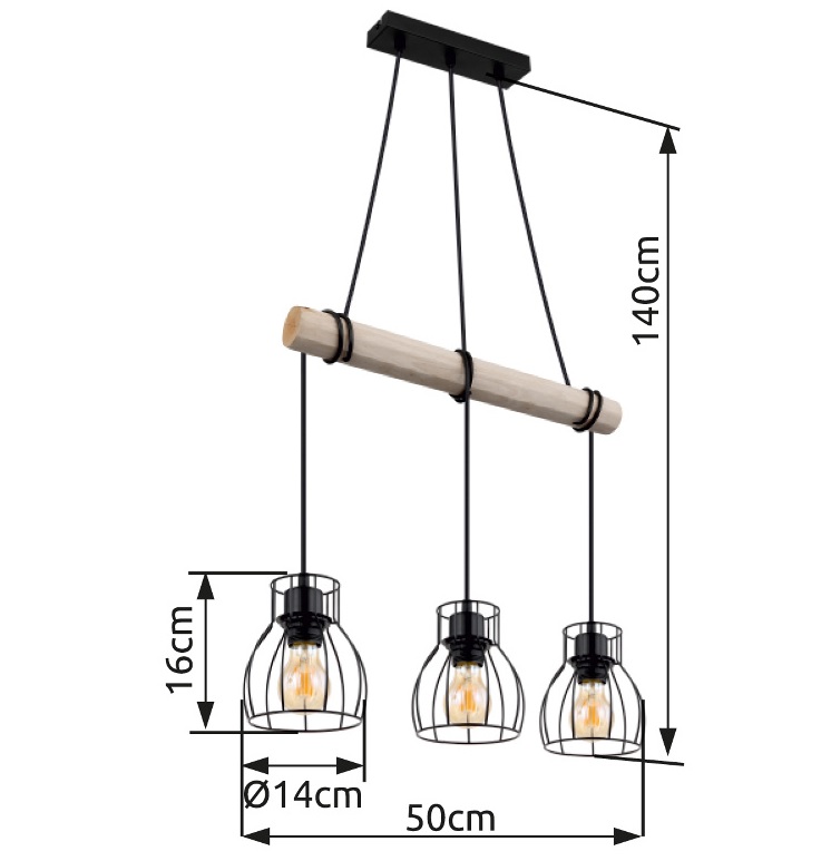 Závěsné svítidlo z rodiny Mina zaujme fantastickou kombinací dřeva a kovu. Tři černé kabely vedou od stropního držáku, omotané kolem dřevěného trámu, k objímce E27 s kovovým síťovaným stínítkem. S objímkami E27 (max.40W) máte možnost vybrat si vlastní světelný zdroj a tím si určit intenzitu a barvu světla. Doporučujeme LED zdroje pro jejich úsporu energie a dlouhou životnost.