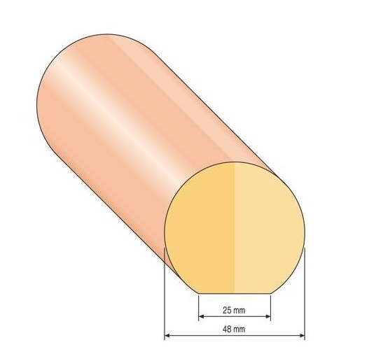 Madlo z nastaveného smrku, průměr 48 mm, délka 2000 mm.