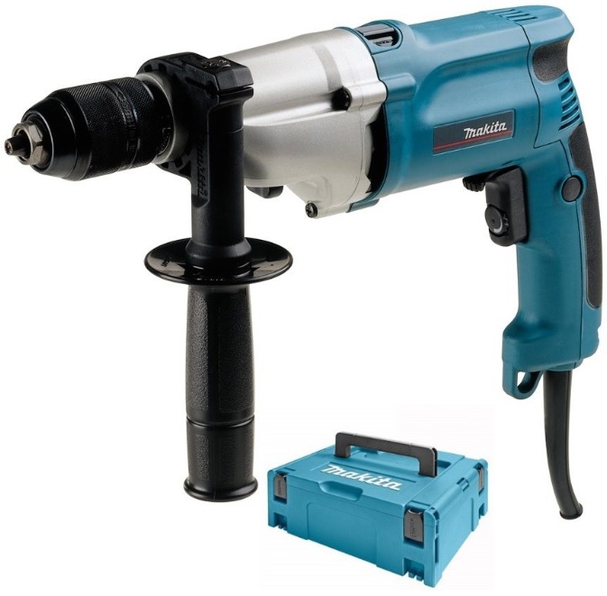 Dvourychlostní příklepová vrtačka Makita HP2051HJ s výkonem 720 W a hmotností 2,5 kg.