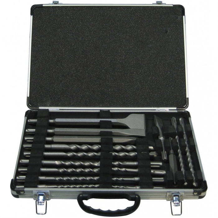 12 vrtáků a 5 x sekáče SDS plus v hliníkovém kufru