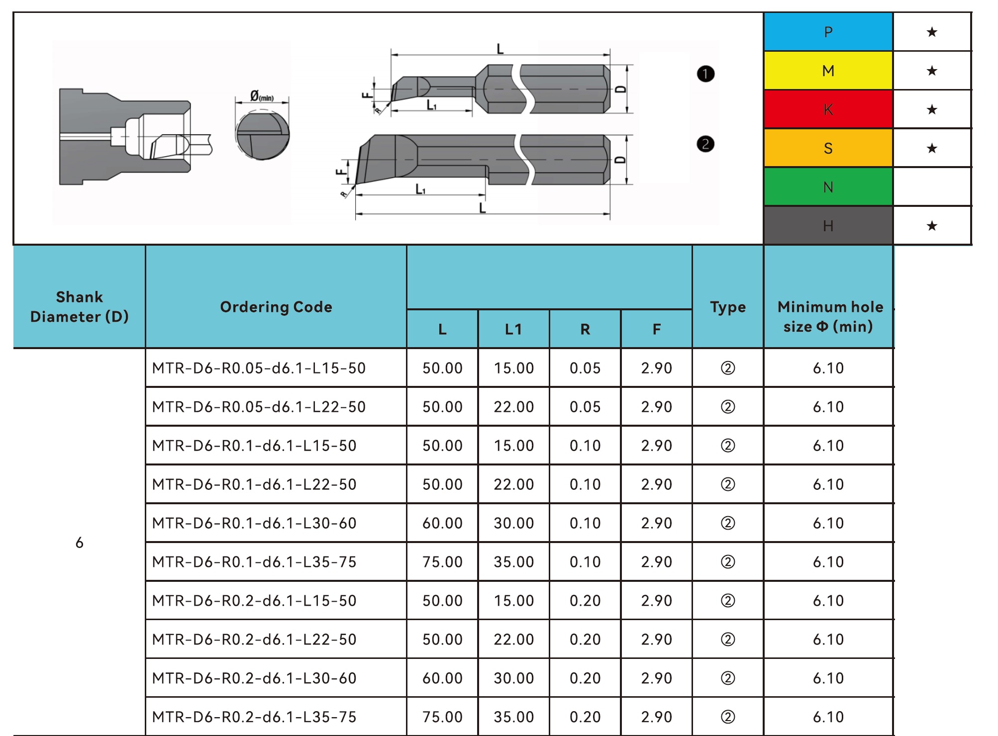 Mikro soustružnický nůž MTR 6 R0.2 L15; do otvoru min 6,1 mm