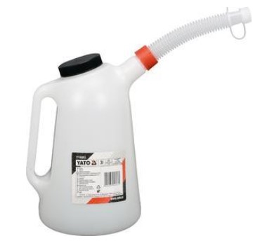 Nádoba o objemu 3L vyrobená z odolného PE materiálu odolného vůči technickým kapalinám, opatřená šroubovacím víkem a ohebnou nálevkou. Na boku nádoby je praktická stupnice pro snadné dávkování.