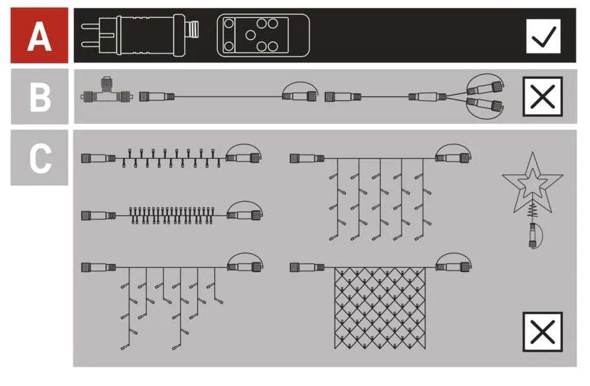 Na jeden adaptér lze napojit až 800 LED světýlek systému CONNECT SYSTEM STANDARD nebo 500 LED světýlek systému CONNECT SYSTEM PROFI.