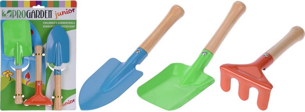 Dětské zahradní nářadí kov. + dřev. rukojeť, sada 3díl.
