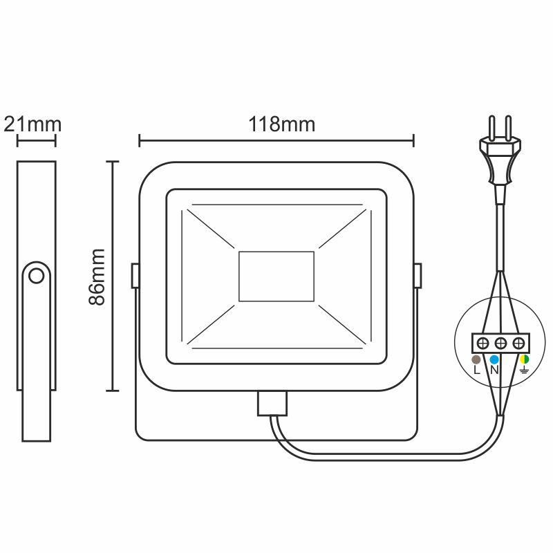 Spotřeba: 10W světelný tok: 900Lm krytí: IP65 chromatičnost (barva světla): 4000K - neutrální bílá stupeň mechanické ochrany: IK08 úhel světla: 120° rozměr (mm): 118 x 86 x 21 senzor: - napětí: AC220 - 265V životnost: 30 000h spínací cyklus: 25 000 x energetická třída: A+ náhrada za cca: 90W stmívatelná: ne materiál: HQ aluminium-matný antikorózní nástřik typ difúzoru: 4.0mm tvrzené reflexní sklo, ANTI-oslnivé"