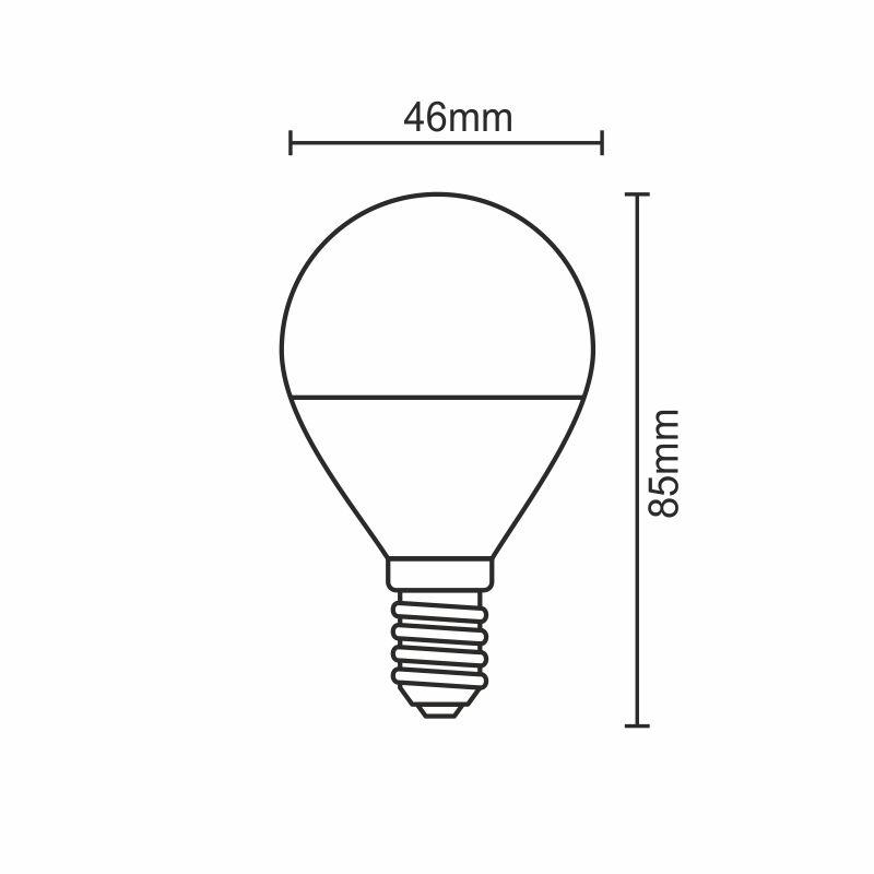 Spotřeba: 5W světelný tok: 410Lm patice: E14 chromatičnost (barva světla): 3000K - teplá bílá úhel světla: 160° rozměr (mm): pr.46 x 85 napětí: AC165 - 265V životnost: 30 000h spínací cyklus: 20 000 x energetická třída: A+ náhrada za cca: 45W stmívatelná: ne materiál: thermal PC + Al"