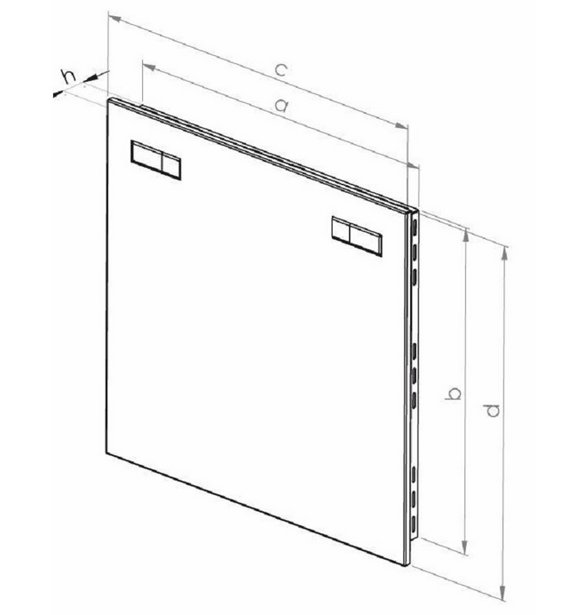 Rozměry: a=397 mm; b=397 mm; c=430 mm; d=430 mm; h=40 mm