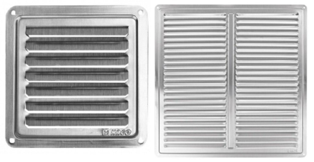 Nerezová větrací mřížka použitelná v exteriéru i interiéru.