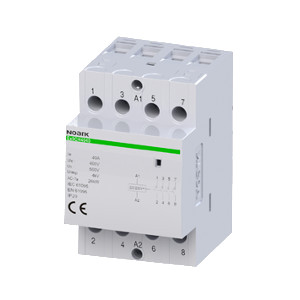 Instalační stykač, 40 A, ovl. 220/230 V, 4 NO kontakty. Modulární stykače Ex9CH jsou určeny zejména do domovních a průmyslových instalačních rozvaděčů. Jsou používány pro základní aplikace - spínání a ovládání svítidel, topení, ventilací, čerpadel a dalších zařízení. Optický indikátor na přední straně signalizuje stav hlavních kontaktů a přítomnost napětí na ovládací cívce.