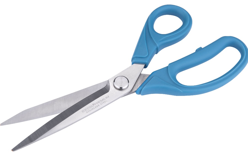 Nerezové nůžky pevné konstrukce s polypropylenovými rukojeťmi a nerezovými čepelemi o tl. 3mm použitelné na stříhání jak kancelářského papíru, tak i pevnějších materiálů jako je textil, plastové či pryžových fólie/archy atp.