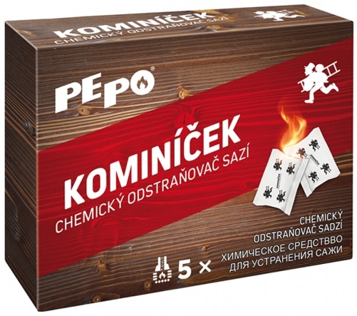 Přípravek k odstraňovaní sazí z komínů a kouřovodů, zlepšuje hospodárnost provozu kamen a kotlů a působí preventivně proti vzniku požárů způsobených vznícením sazí v kouřovodech.