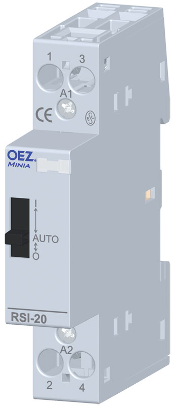 Ith 20 A, Uc AC 230 V, 2x zapínací kontakt, s manuálním ovládáním.