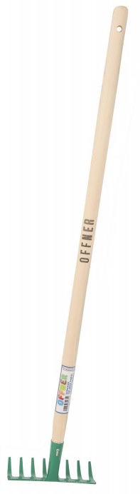 Kvalitní dětské kovové hrábě na delší dřevěné násadě, které poslouží dětem na hraní na pískovišti, ale i na pomoc okolo domu.