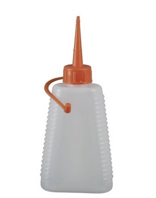 Plastová olejnička 100 ml průhledná s uzávěrem, mazání pomocí stlačením nádobky.