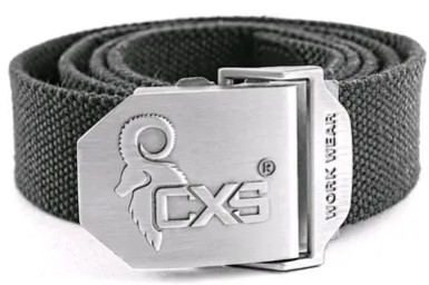 Textilní opasek s kovovou sponou s logem CXS, jednoduché patentní zapínání, spona pro individuální nastavení délky.