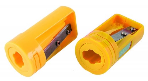 Vstupní otočný tvar ořezávátka je uzpůsobený pro ploché tesařské tužky i šestihranné tužky a pastelky.