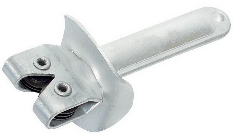 Praktický plechový brousek s kolečky k broušení srpů a kos.