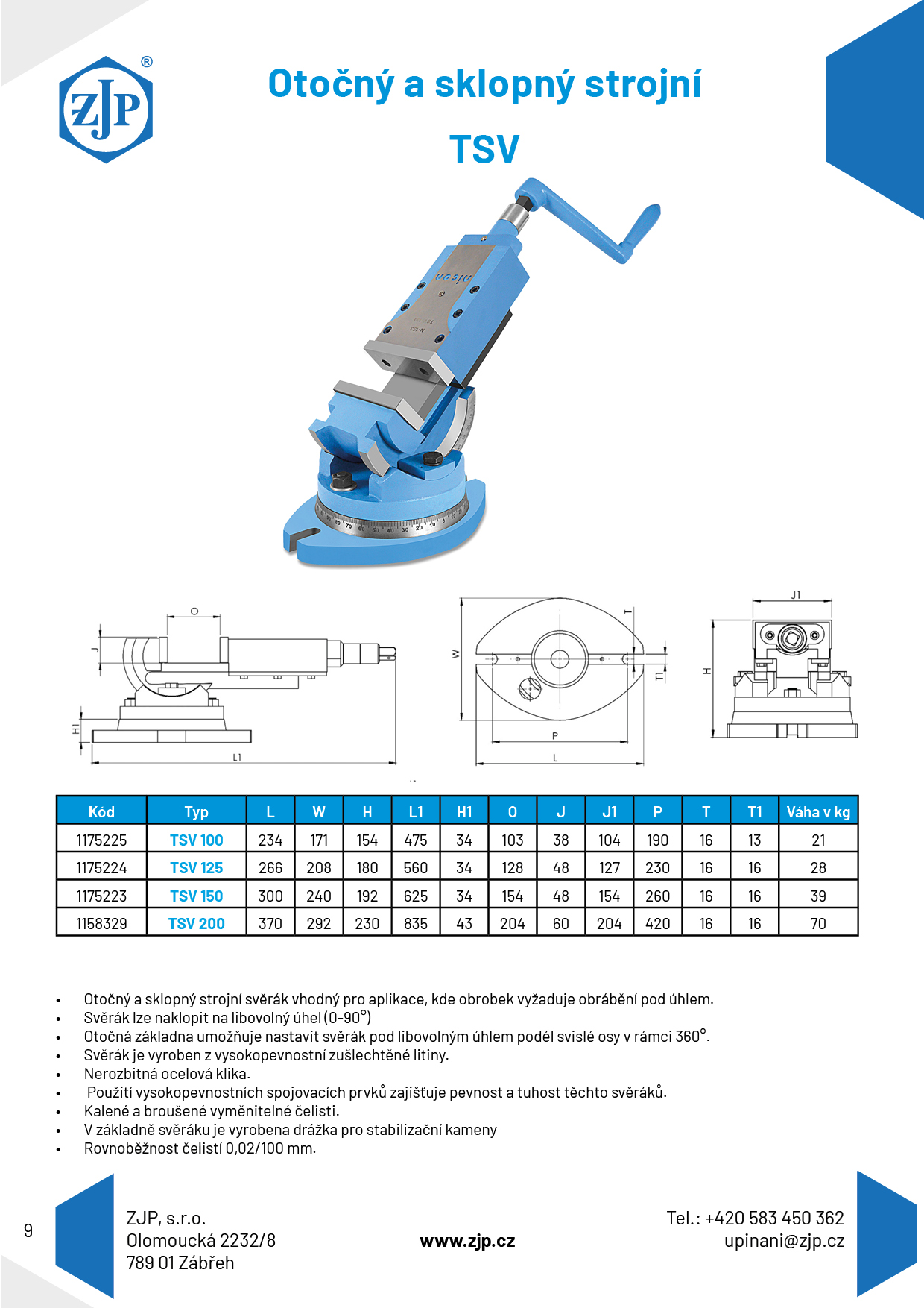 Čelisti svěráku jsou kaleny, na všech upínacích plochách broušeny a opatřeny prizmatickými drážkami pro upínání rotačních dílů.